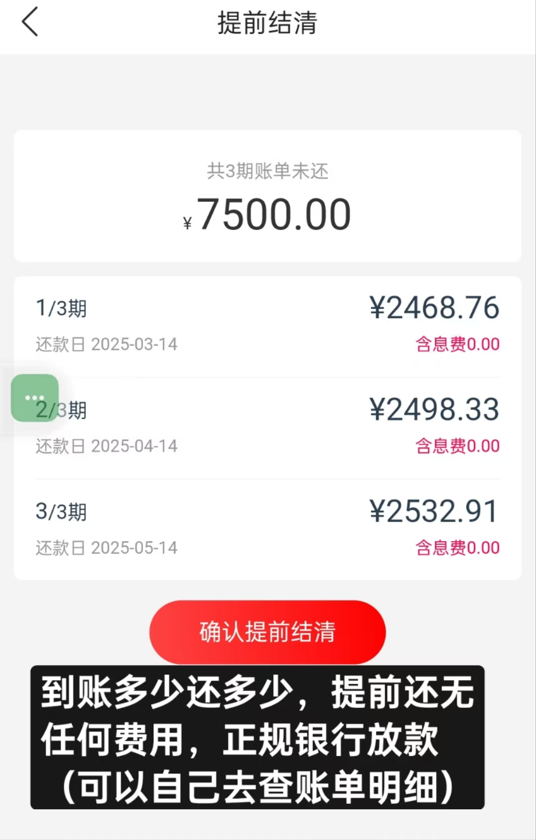 正规银行放款的(可以自己去查到账明细),钱到账了,再用这笔钱还回去,提前还没有手续费,无任何风险。