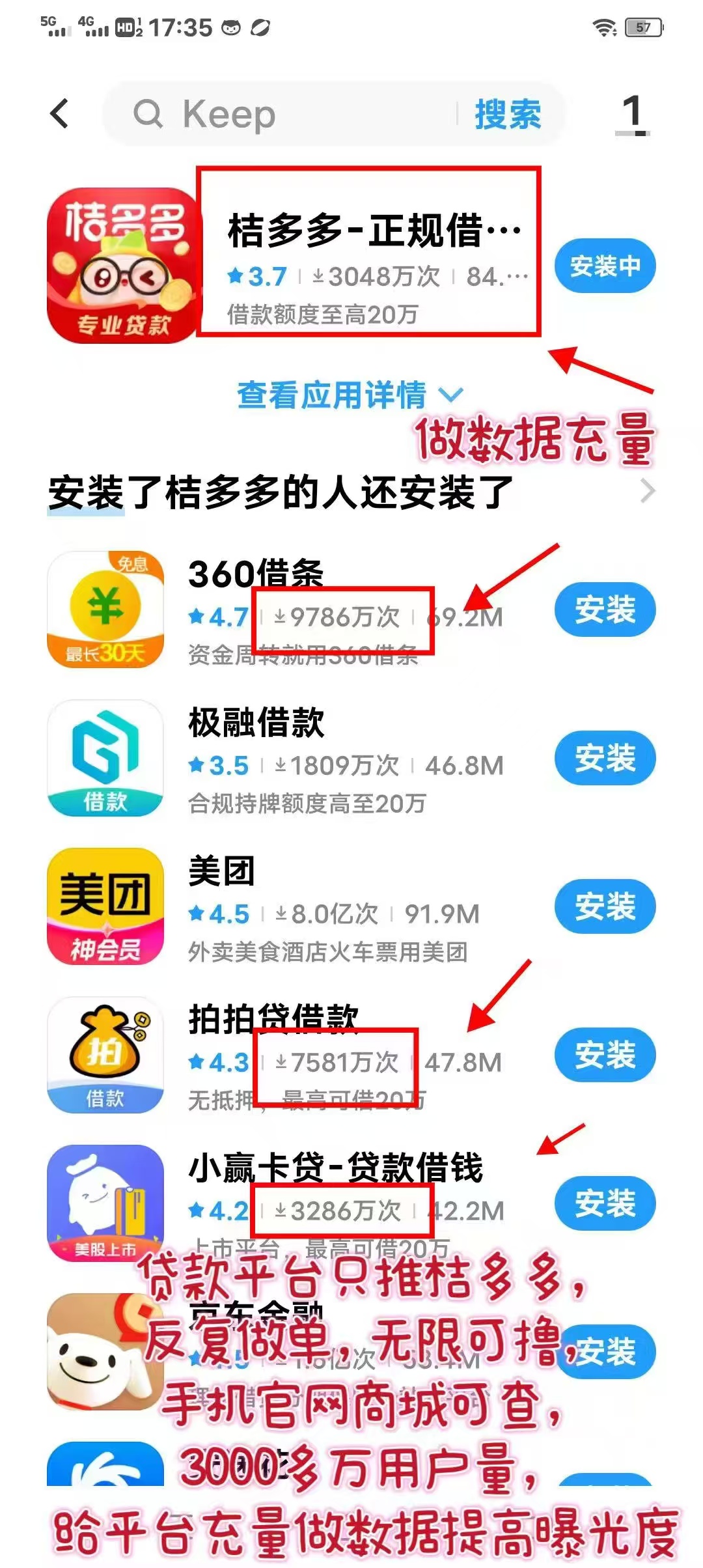 注册下载桔多多,申请额度,借一笔钱出来,到账之后再马上还回去,不会产生任何费用,首次做佣金100,后面可以重复做,每做一次佣金50,一单一结,一个人一共可以重复做100次,一个人最多挣5000块左右。